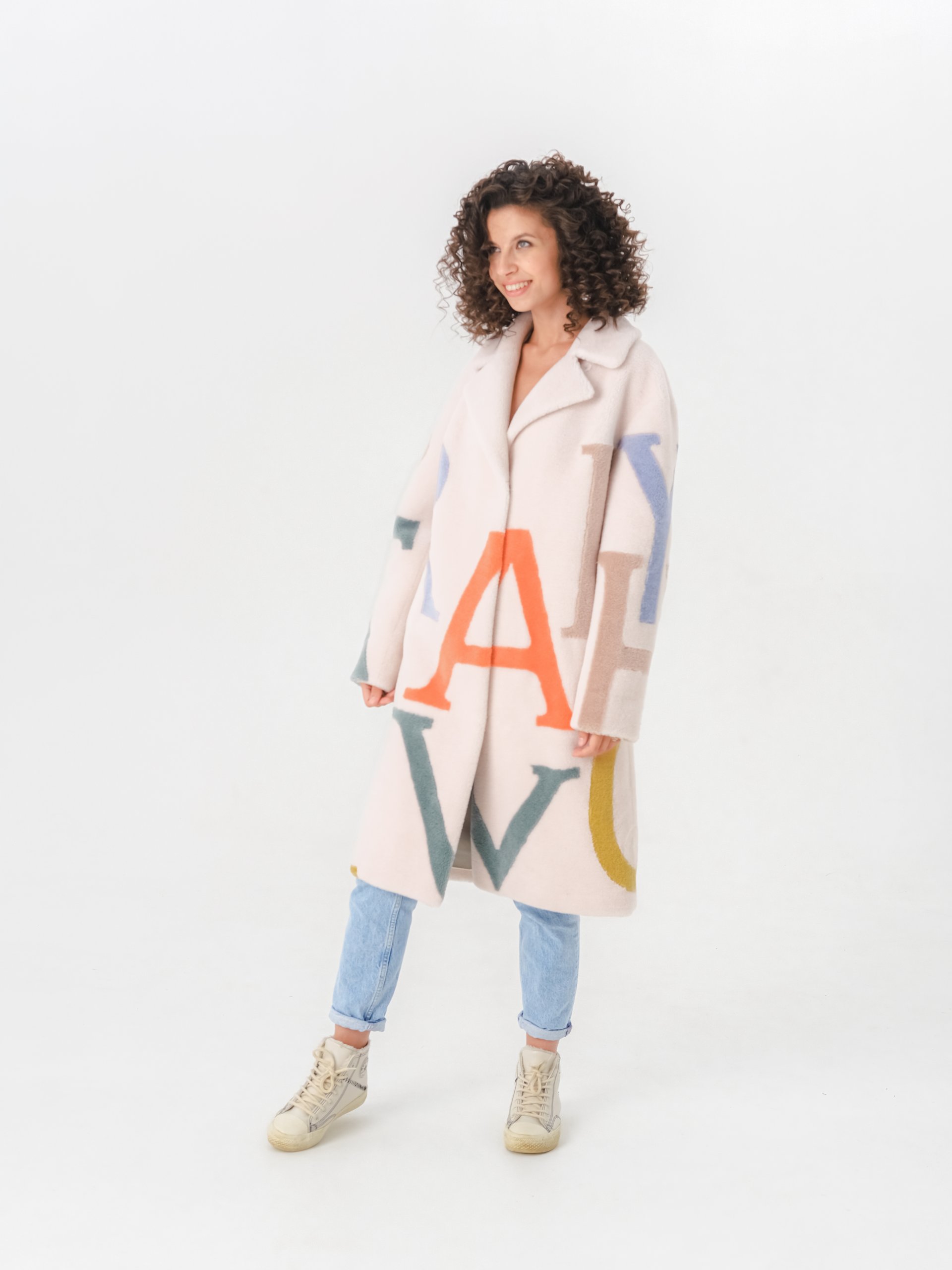 Уличная элегантность сочетается с женственностью в этом универсальном пальто с логотипом, выполненном из очень уютной плюшевой ткани. Пальто представлено в двух цветовых вариантах: нежно-розовое и светло-бежевый. Есть пояс.
