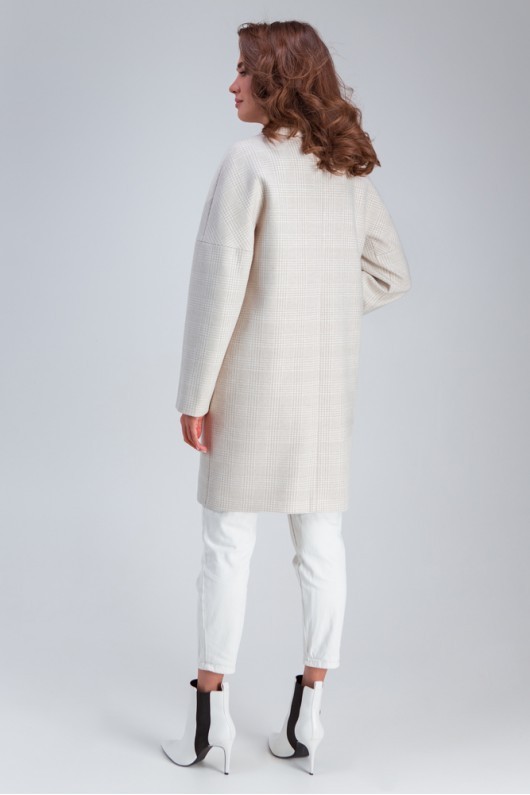 Пальто «Мэг» привлекает внимание основной тканью. Оно пошито из нежной, мягкой, теплой ткани, имеющей в составе шерсть. Изделие свободно сидит на фигуре, подчеркивая только ее достоинства. Рукав с манжетом. Приспущення линия плеча. Карманы прорезные с листочкой.